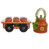 Hand Painted Aluminum Tea Kettle Set with 4 Glasses & Wooden Tray | Multicolor Home Décor for Tea Party Serving | Unique Gift