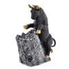 Black Bull Figurine with Golden Horns | Polyresin Climbing on Rock Showpiece for Modern Home Décor, Office Table & Gifting