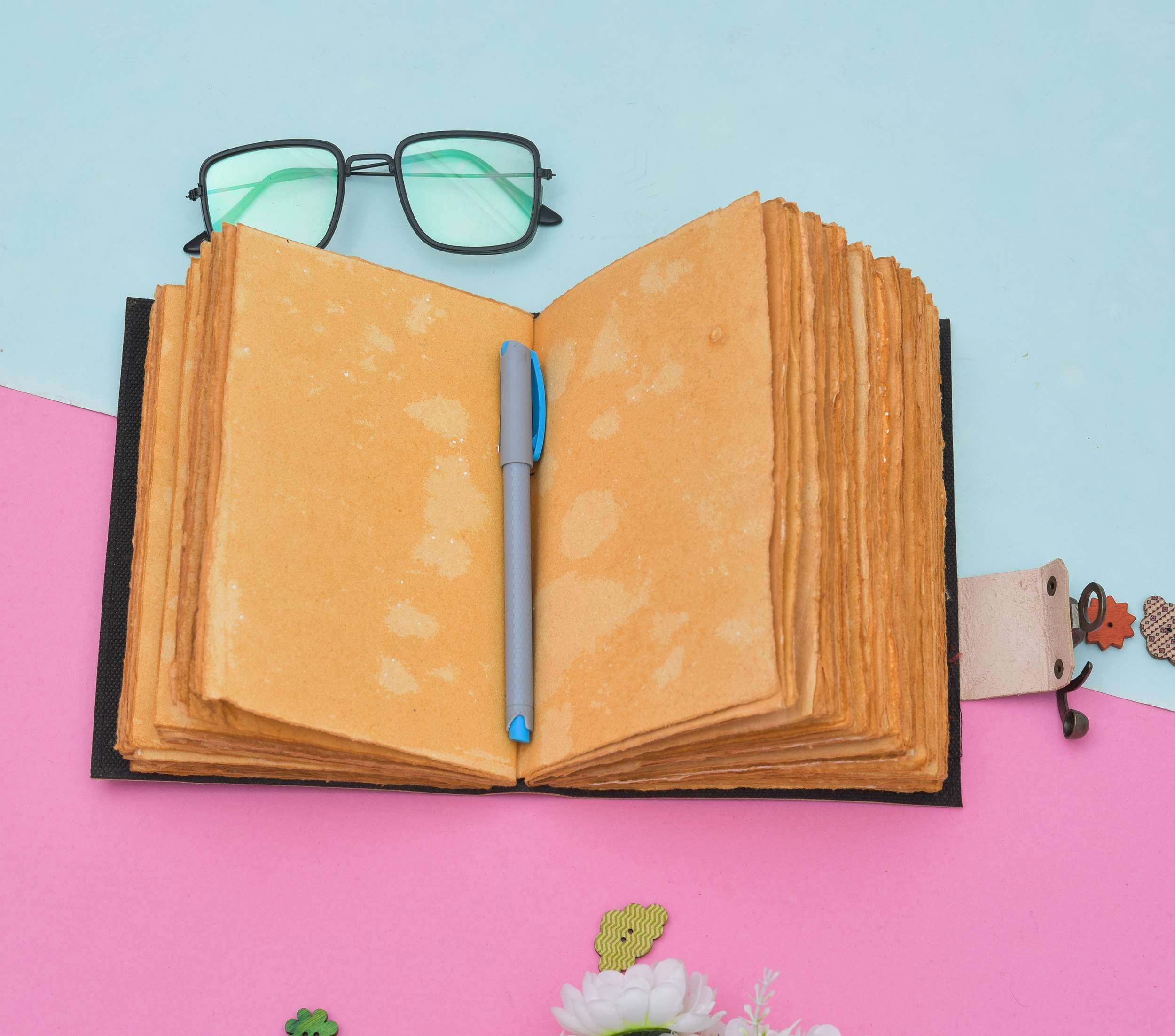 Vintage handmade leather journal. Crafted with genuine leather, it radiates authenticity and charm, perfect for those who appreciate classic craftsmanship. The premium antique lock closure adds a touch of elegance and security, ensuring your thoughts and memories are safeguarded within its pages. Inside, you’ll discover 200 brown handmade pages, providing ample space for your musings, sketches, and stories to unfold. Whether it’s for journaling, sketching, or planning, this versatile journal is a timeless companion for your creative endeavors. Treat yourself or a loved one to this exquisite piece, a celebration of tradition and creativity