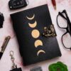 Moon Phases | Vintage Handmade Genuine Leather Diary Journal | Premium Antique String Closure, 200 Handmade Unruled Pages