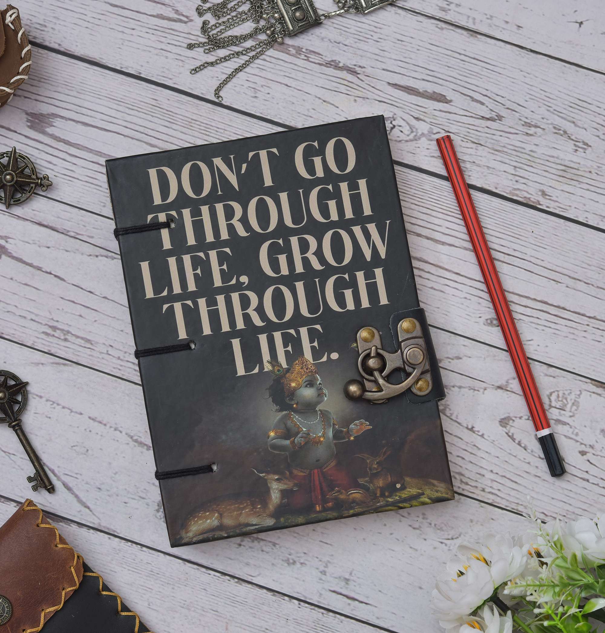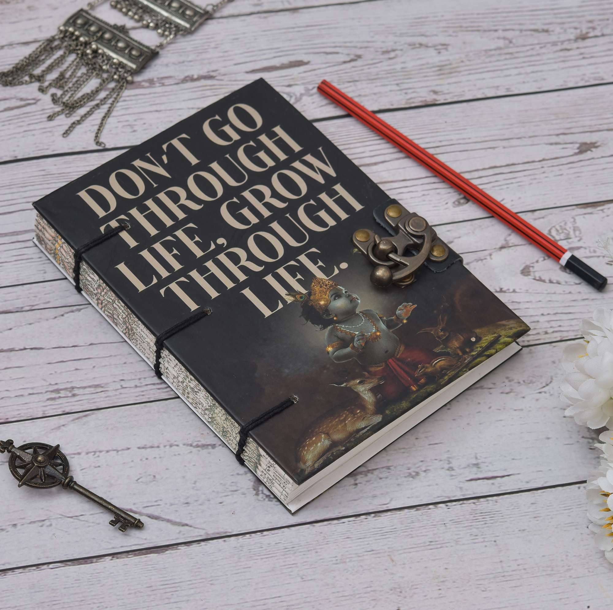 Handmade Classic Krishna Printed Cardboard Writing sketching Diary for Different Purposes