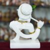 Add divine charm and elegance to your space with this White Marble Lord Krishna Idol Playing Flute with Peacock Feather. Known as Makhan Chor and the divine lover, Krishna Ji symbolizes love, joy, harmony, and prosperity, making this idol perfect for worship, vastu placement, and artistic home décor.