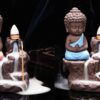 Meditating Monk Buddha Smoke Backflow Cone Incense Holder Decorative Showpiece with 10 Free Smoke Backflow Scented Cone Incenses
