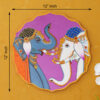 Elevate your space with a touch of traditional Indian art through this stunning Hand Painted Pichwai Painting. This exquisite piece beautifully depicts two majestic elephants standing peacefully on a detailed purple plate. Each painting is meticulously crafted by skilled artisans, making it a unique and soulful addition to your home.