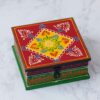 Store your precious jewels in regal style with our handcrafted wooden Rajasthan jewelry box. Inspired by the rich heritage of Rajasthan, this exquisite box features intricate detailing and vibrant colors. Made from high-quality wood, each box is meticulously crafted by skilled artisans, making it a unique and luxurious storage solution for your jewelry collection. The traditional design adds a touch of elegance to any dresser or vanity, while the plush velvet interior ensures your jewelry stays safe and organized. Treat yourself or someone special to the timeless beauty of Rajasthan with this stunning jewelry box.